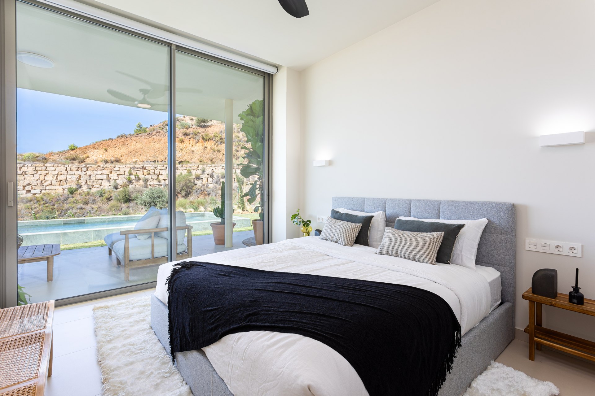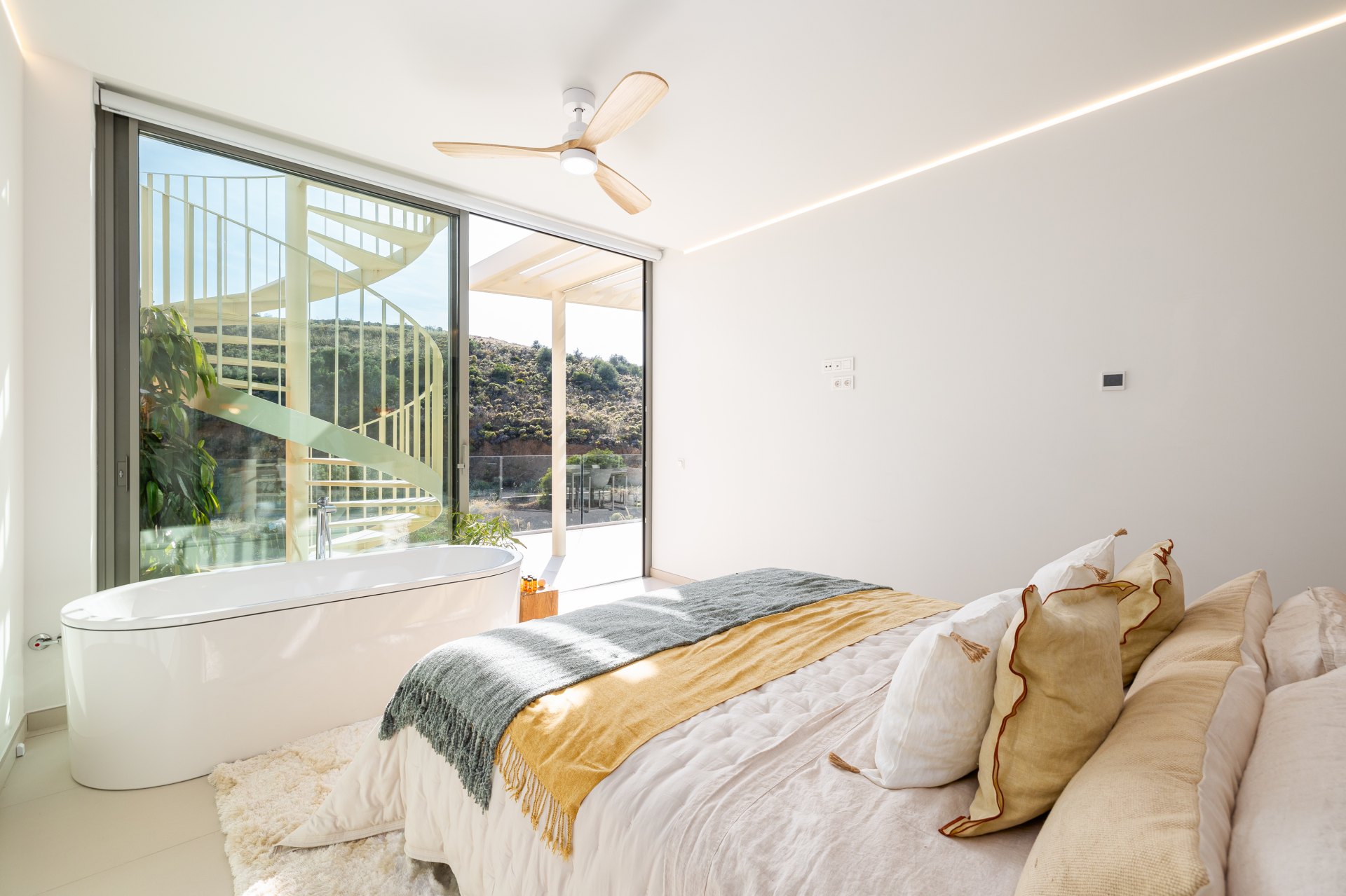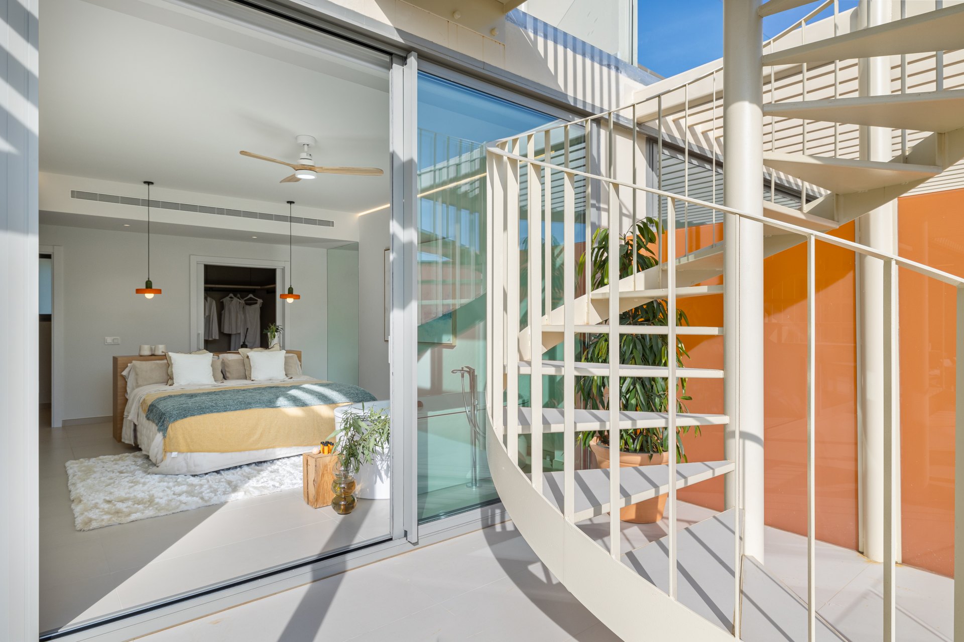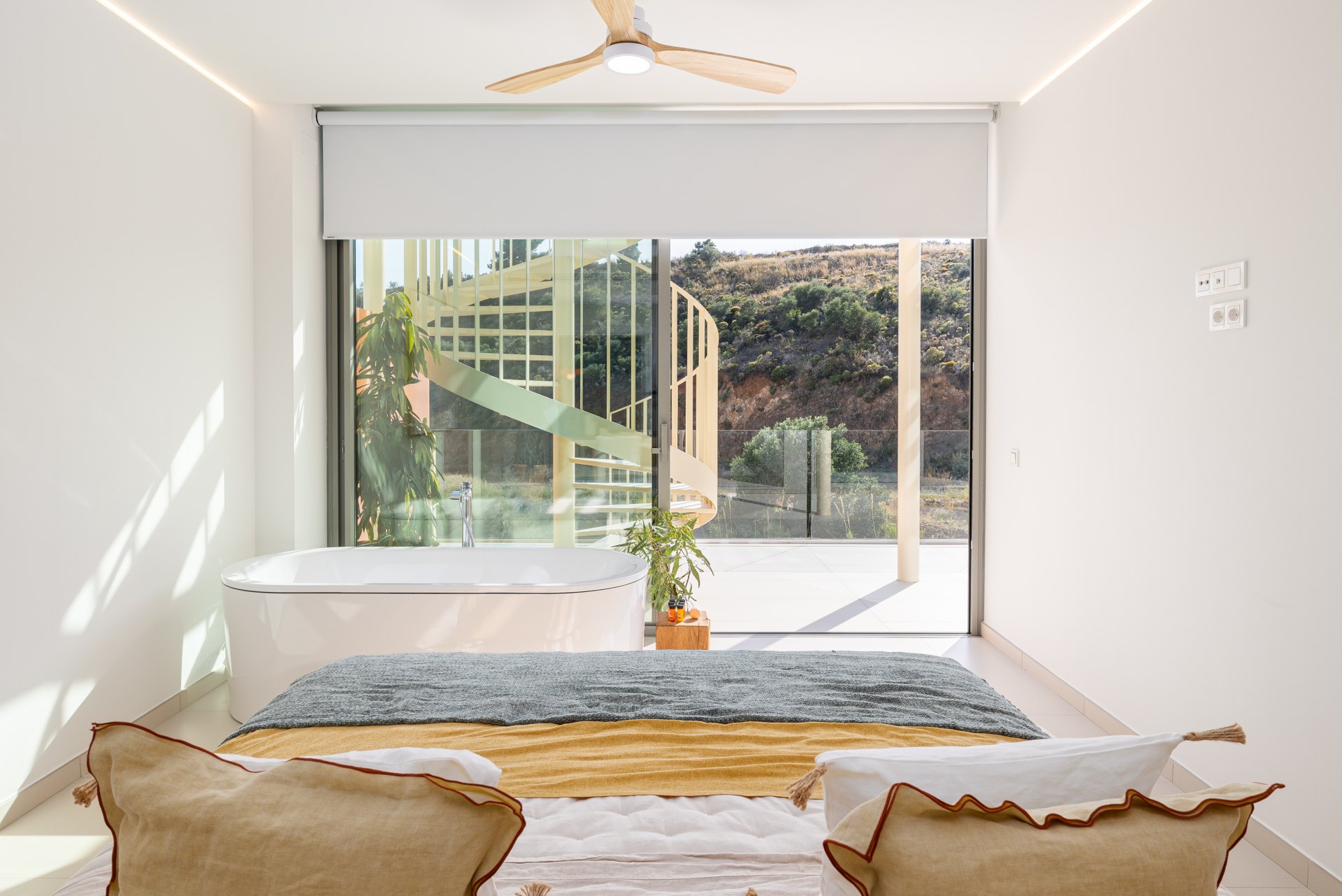 The interiors of this development stand out for their exceptional quality, featuring Saloni ceramic flooring, kitchens equipped with Bosch and AEG appliances, and underfloor heating. Home automation provides comfort and control, while the bathrooms showcase luxury finishes from brands such as Kaldewei, Duravit, and Hansgrohe. The large windows fill the spaces with natural light, enhancing the neutral and warm tones that create a cosy and elegant atmosphere.