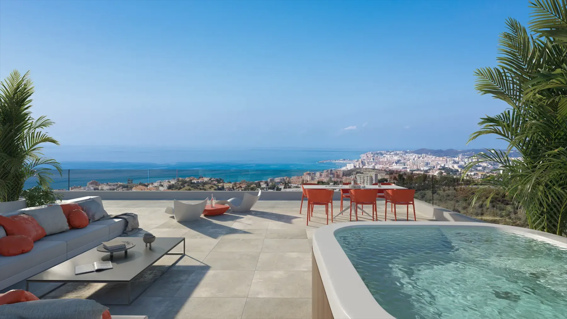 This spectacular promotion, immersed in nature thanks to the abundant vegetation throughout the building and community, offers a modern, minimalist, and elegant design that brings serenity. It comprises 233 residences with 1, 2, and 3 bedrooms, featuring a variety of layouts to satisfy the most discerning tastes, such as Garden Villas with private pools and gardens designed to minimize environmental impact, utilizing drip irrigation and indigenous plants, shrubs, and trees. Luxury apartments with stunning panoramic sea views and private pools provide the ultimate in luxury and exclusivity. The location, at the highest point of El Higuerón, next to the lush Sierra de Mijas filled with hiking trails and close to the renowned El Higuerón restaurant, offers unmatched panoramic views. It is also just a short drive from the beach, schools, hospitals, and Málaga Airport, the most important in Andalusia.