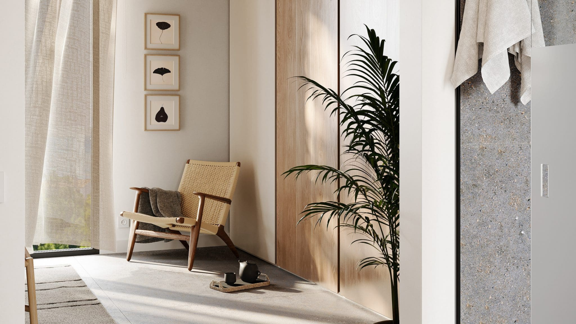 The community borders the prestigious Chaparral Golf Club, recognised as one of the top 50 in Spain. Our design team drew inspiration from geometric lines to create a harmonious symbiosis with the existing vegetation, establishing a fluid dialogue with nature, its energy and dynamism.