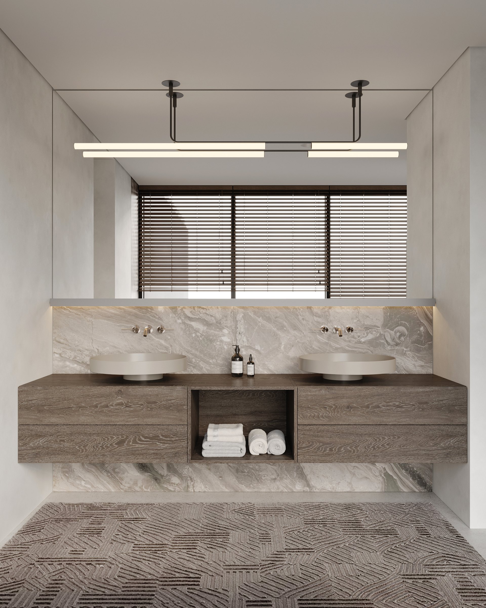 Meticulously designed and reflecting minimalism, the Scandinavian style interior trend seeks to reduce shapes and colours to their simplest states, thus creating bright and elegant spaces. The colour palette of this property includes light and soft natural tones, as well as cool and warm greys, softened by nude and wood tones.