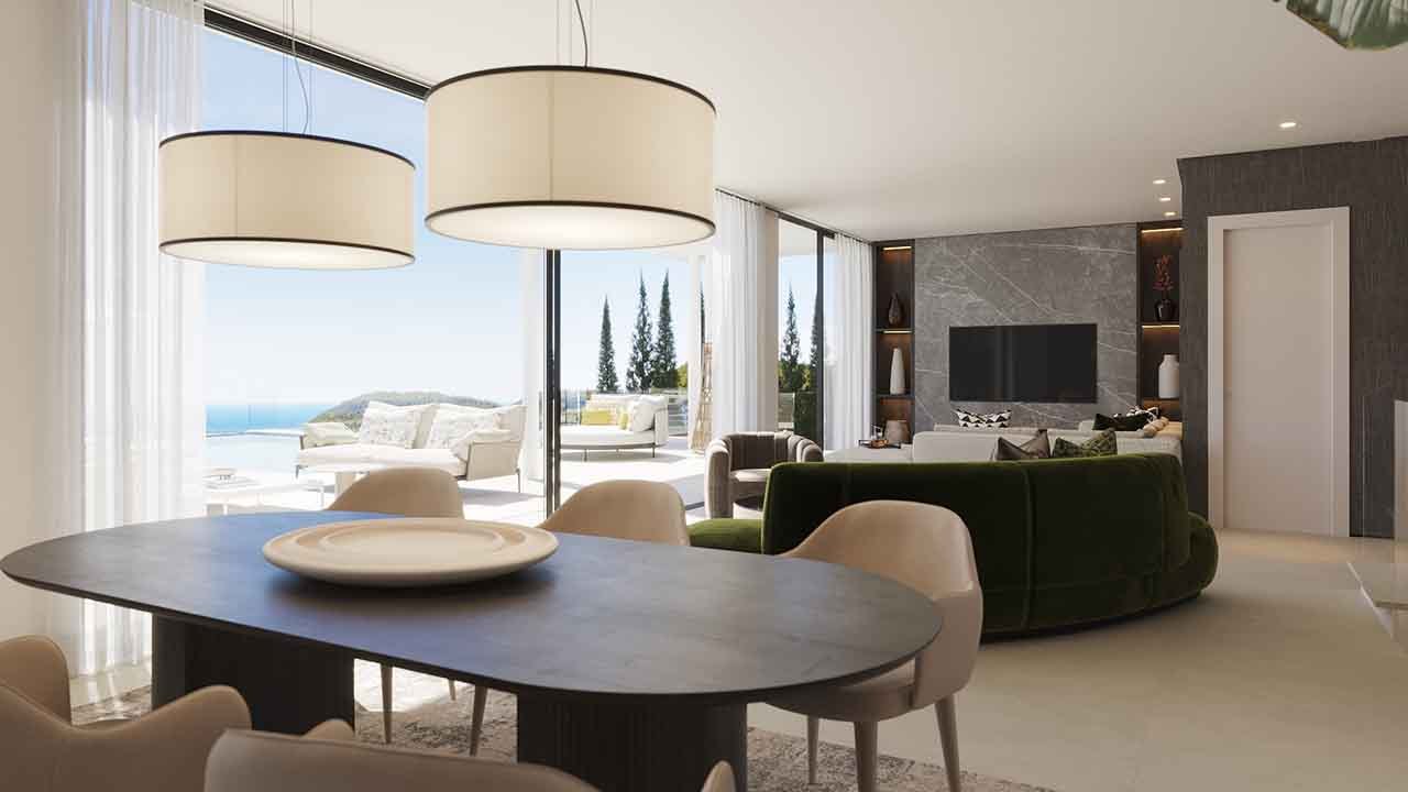 Ubicadas en un entorno sereno y pintoresco, las villas ofrecen vistas panorámicas al mar y a la exuberante vegetación de la Costa del Sol. Sus exteriores están diseñados para maximizar el disfrute del entorno natural, con amplias terrazas y elegantes zonas de estar al aire libre. Los jardines bien cuidados están adornados con plantas autóctonas y ofrecen espacios ideales para relajarse bajo el sol. Además, las piscinas privadas invitan a disfrutar de un refrescante chapuzón mientras se contempla el horizonte, creando un ambiente perfecto para relajarse y conectarse con la belleza natural que rodea cada villa.