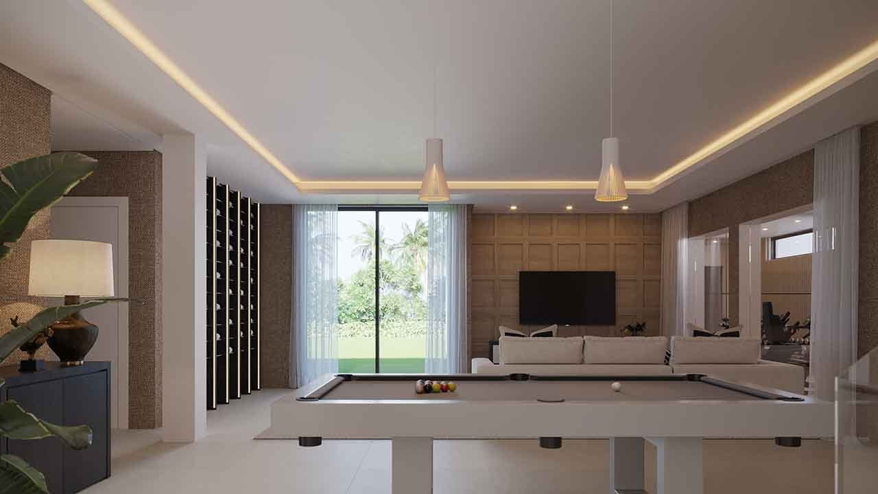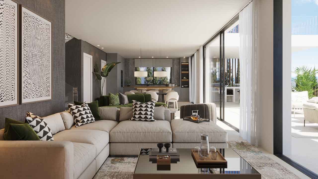 Gracias a su diseño arquitectónico y armonioso que combina con el entorno natural, se optimiza la distribución del espacio y maximiza la luz natural. Las villas cuentan con techos de doble altura y amplias ventanas que realzan la luminosidad y ofrecen vistas espectaculares. Las cocinas, diseñadas por Modulnova, reflejan elegancia y calidad, garantizando una experiencia culinaria de lujo. Las habitaciones están diseñadas para el máximo confort, con grandes ventanales que inundan los espacios de luz y ofrecen vistas impresionantes de la costa. Se podrá escojer entre villas de tres o cuatro dormitorios, siempre personalizables entre diferentes acabados.