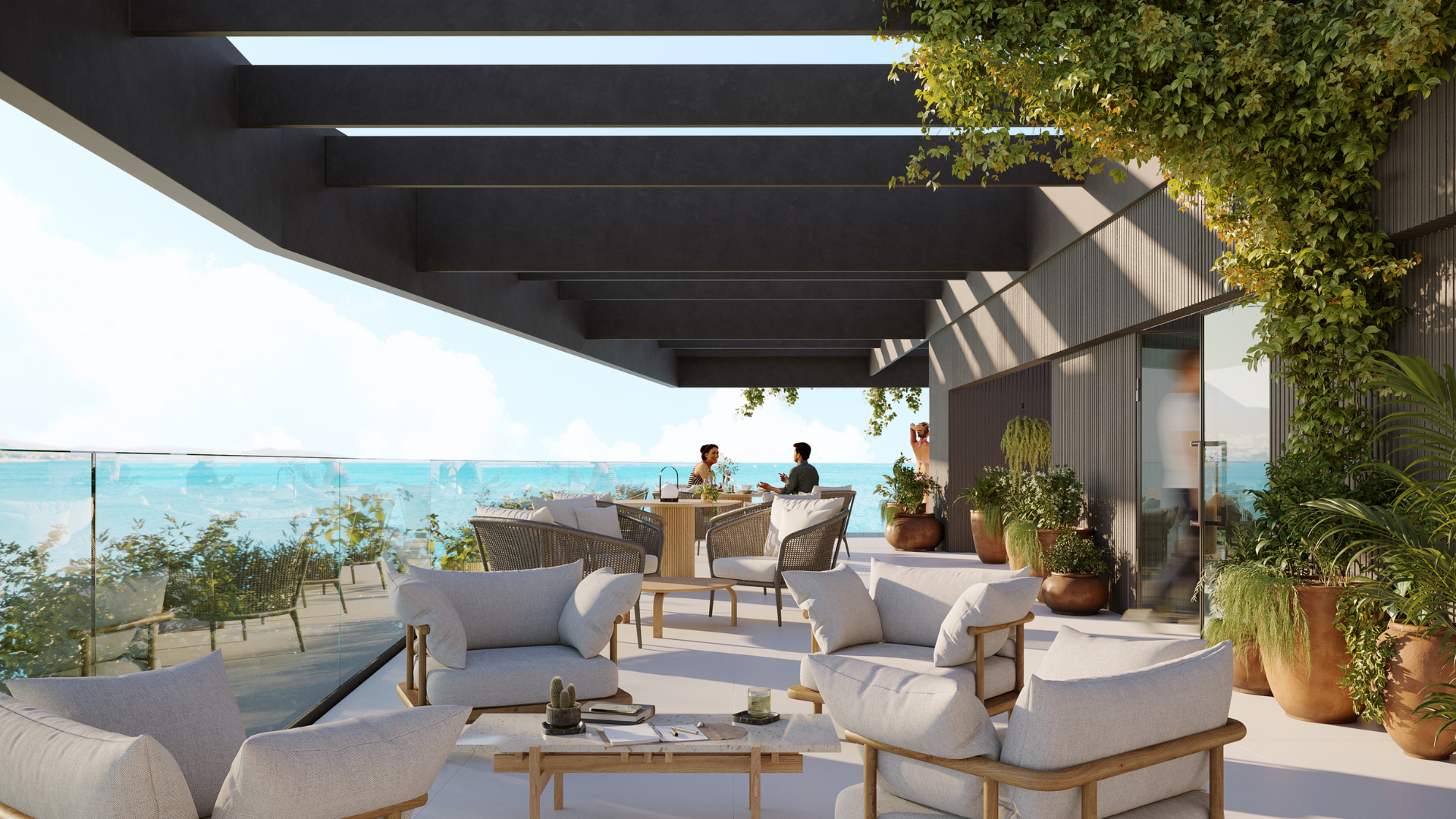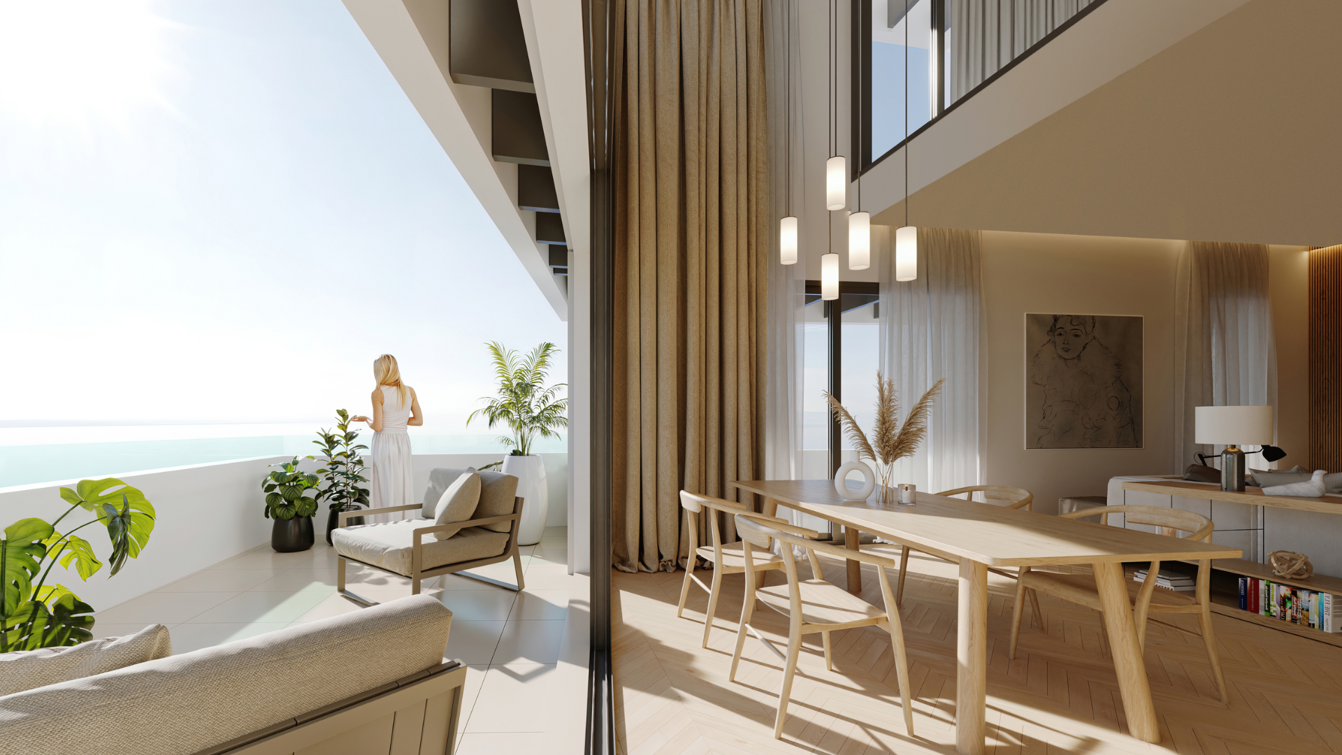 Cada ático cuenta con terrazas privadas donde el mar es el protagonista, invitando a vivir cada amanecer y atardecer al aire libre.