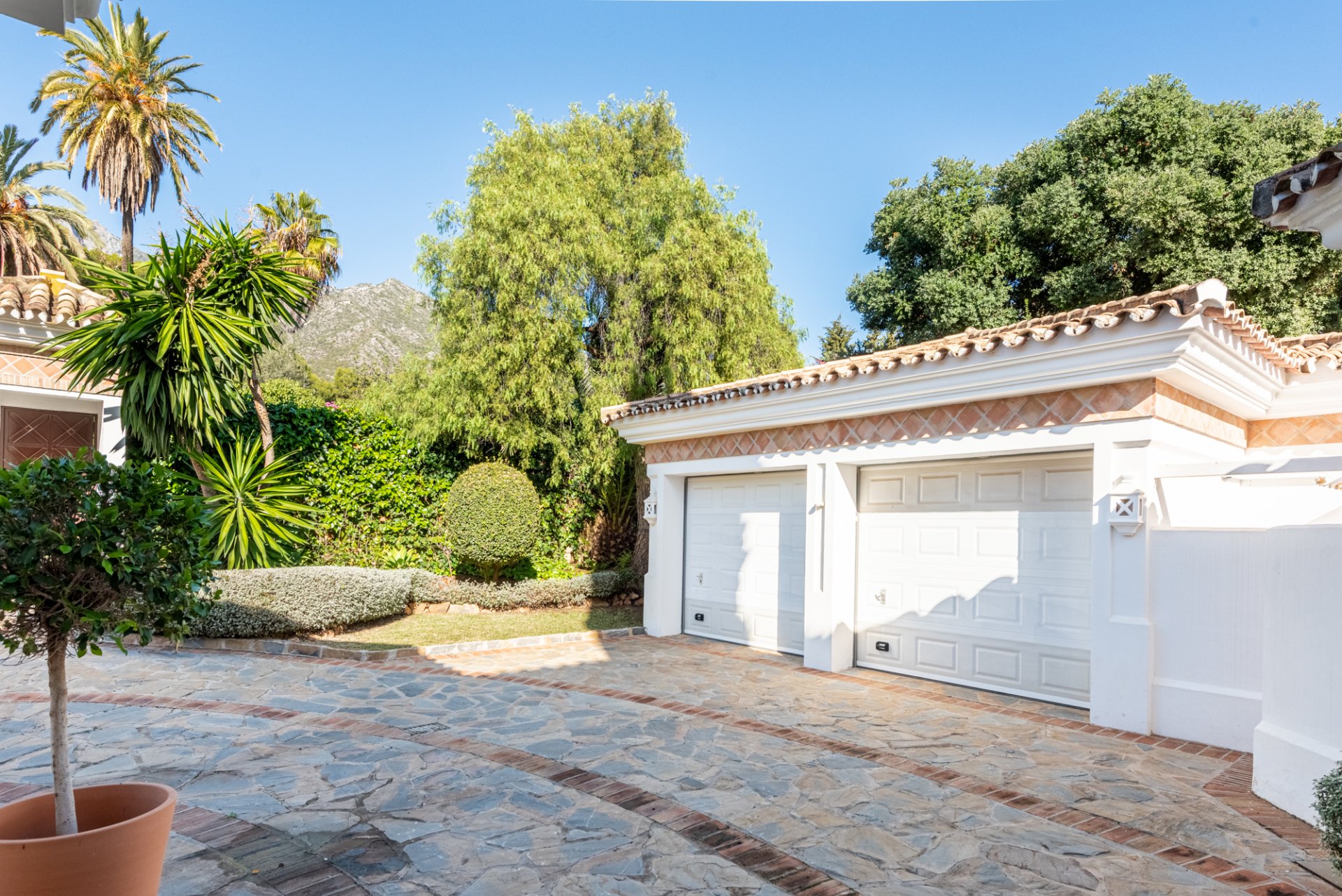 Esta villa se encuentra rodeada de imponentes villas de lujo, ofreciendo privacidad, seguridad y un ambiente exclusivo. El jardín y las vistas a la montaña son dos de los elementos más destacables de esta propiedad. Desde el amplio jardín, se pueden disfrutar de vistas despejadas a la imponente La Concha, lo que hace de este espacio un lugar ideal para relajarse o recibir a invitados. La disposición de la villa permite disfrutar de la naturaleza y del paisaje mediterráneo, con un diseño que aprovecha al máximo el entorno exterior.