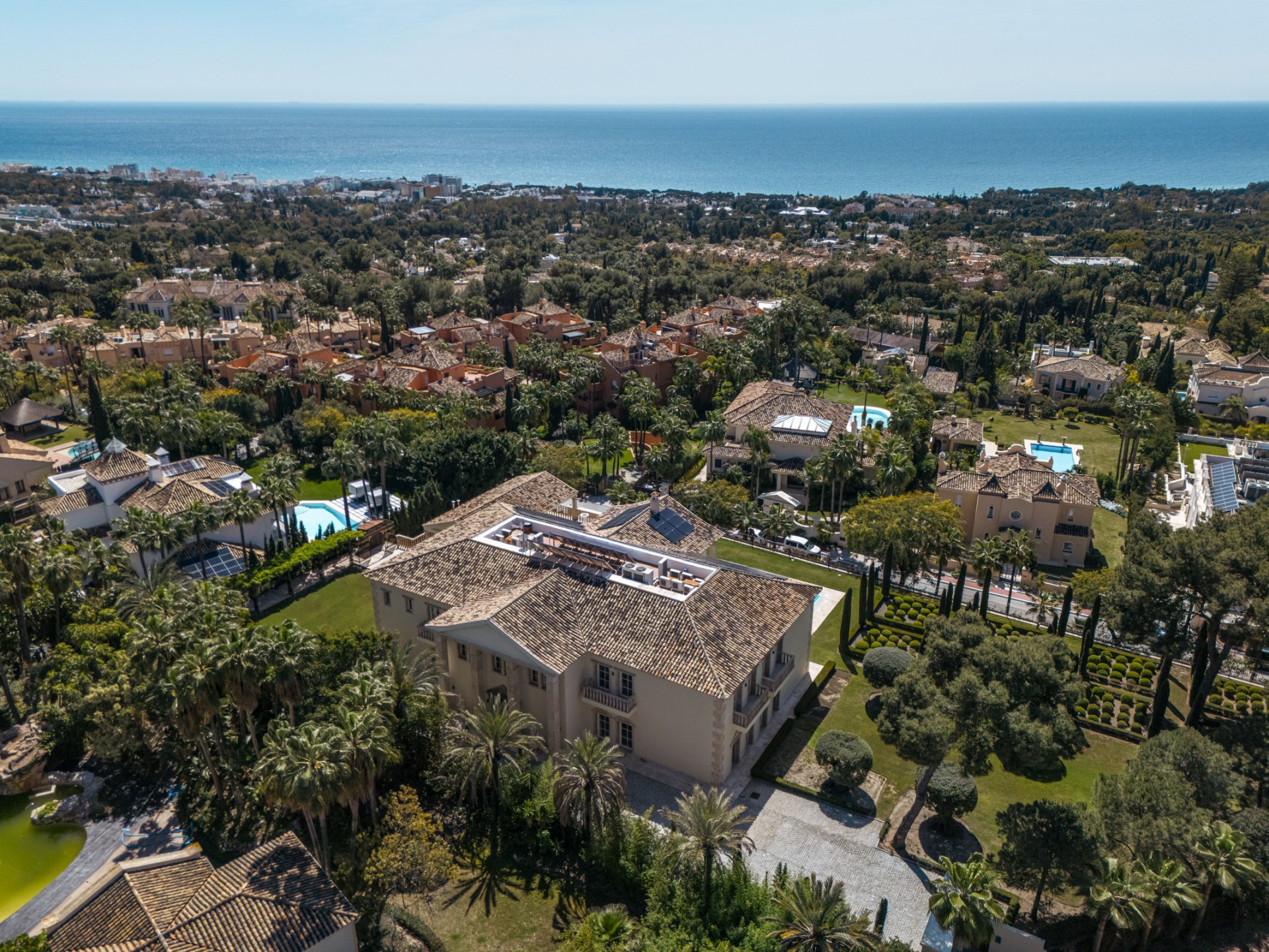 Situada en la prestigiosa Sierra Blanca, esta propiedad ofrece impresionantes vistas al Mediterráneo y a la montaña de La Concha, con acceso cercano a colegios internacionales, boutiques de lujo y gastronomía de renombre. Su imponente hall de entrada, con techos de nueve metros y lámparas de araña eléctricas, establece desde el primer momento el carácter distinguido de la propiedad. Rodeada por jardines distinguidos, con cipreses italianos y olivos maduros meticulosamente cuidados, esta villa es un oasis de serenidad mediterránea.