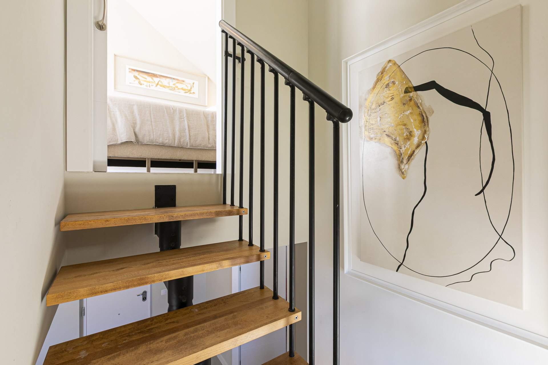 Arriba, la suite principal privada ofrece el retiro final, con un lujoso baño en suite y acceso directo a una terraza con solárium donde se puede relajarse y disfrutar del espectacular entorno.
