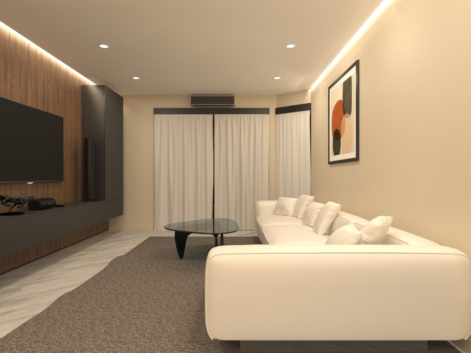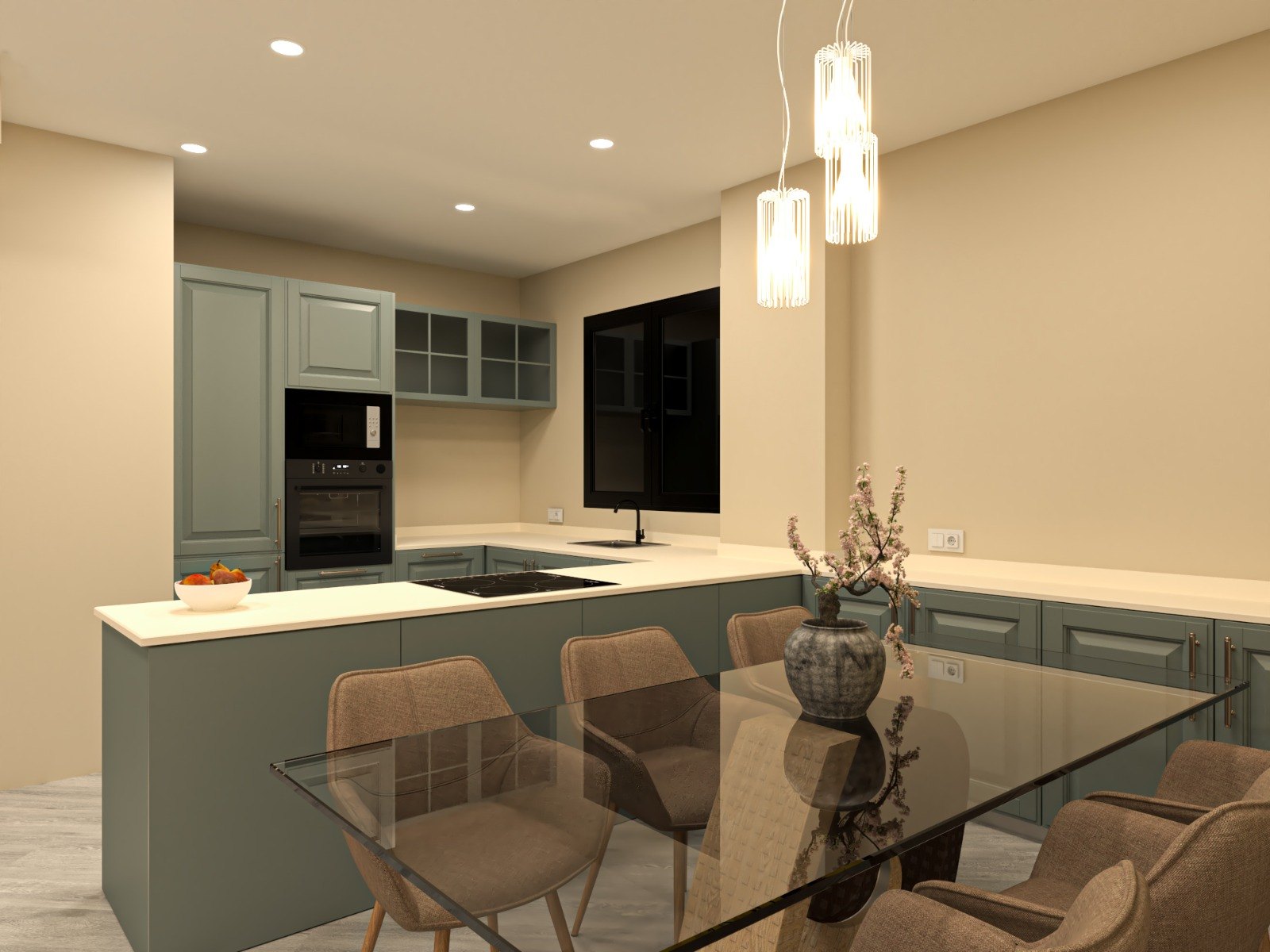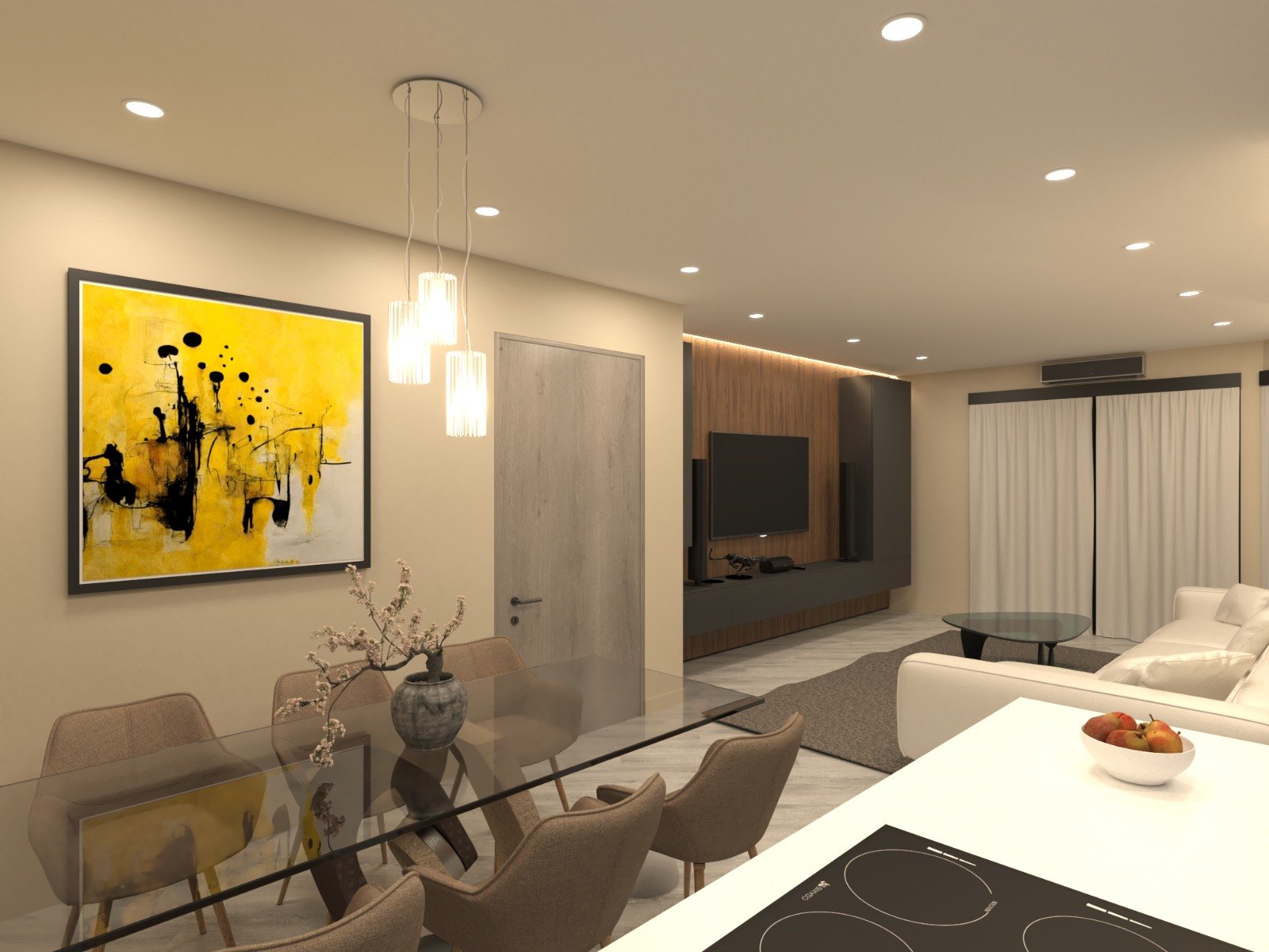 At the heart of the home is a spacious open-plan living room seamlessly integrated with a modern, fully equipped kitchen — a functional and aesthetically flawless space, ideal for sharing moments with family and friends.